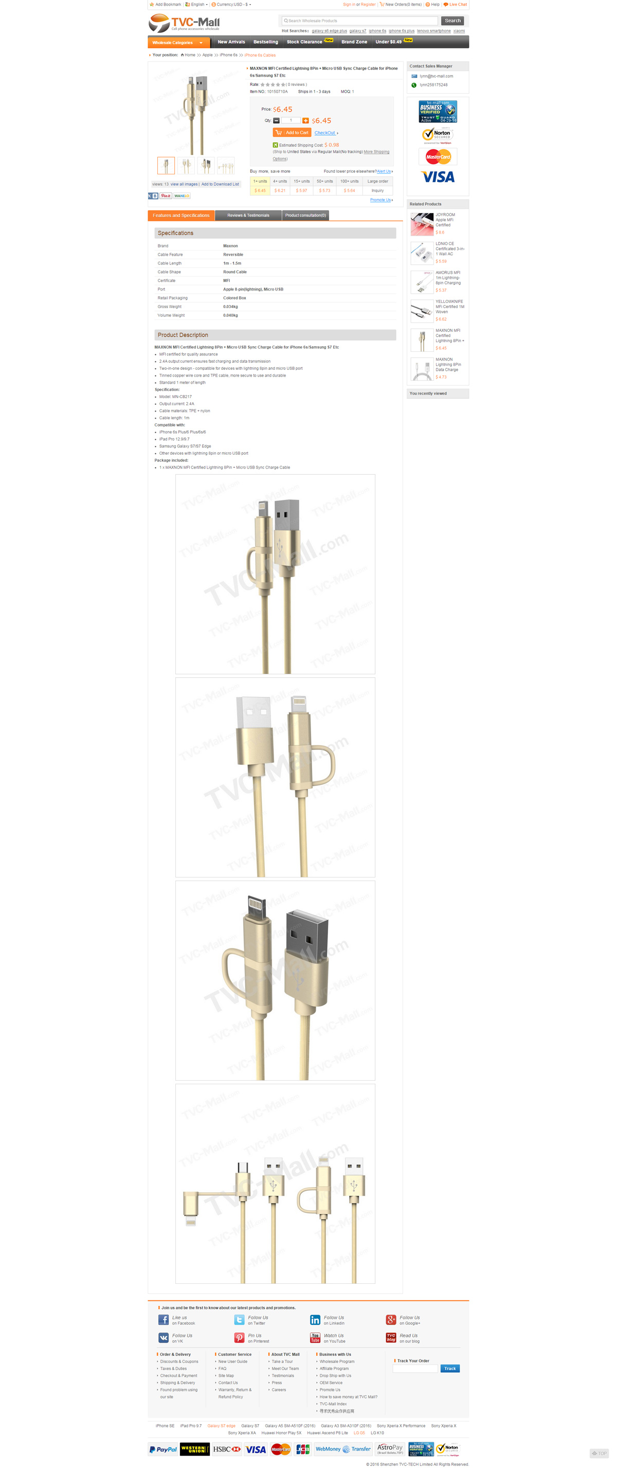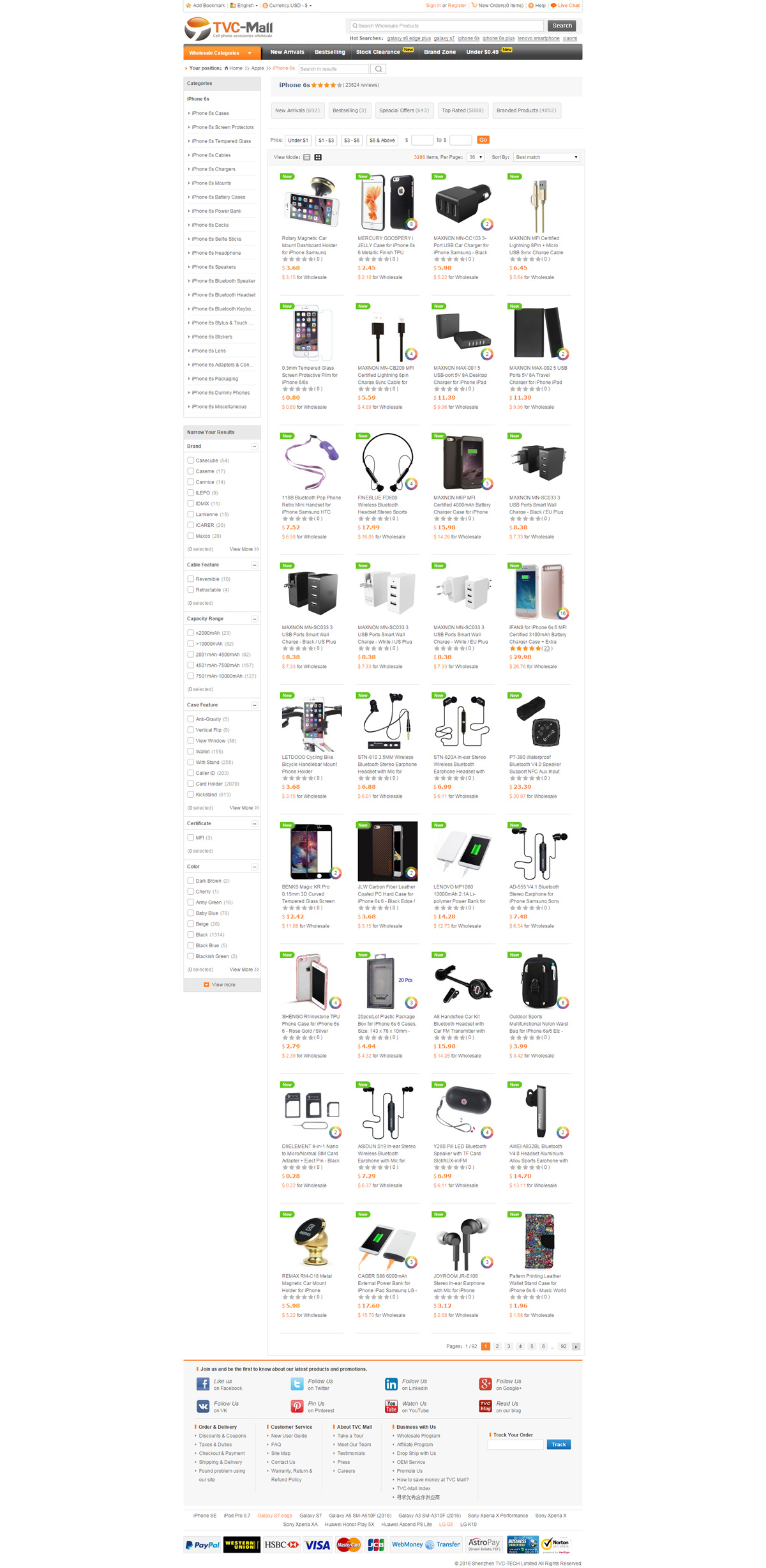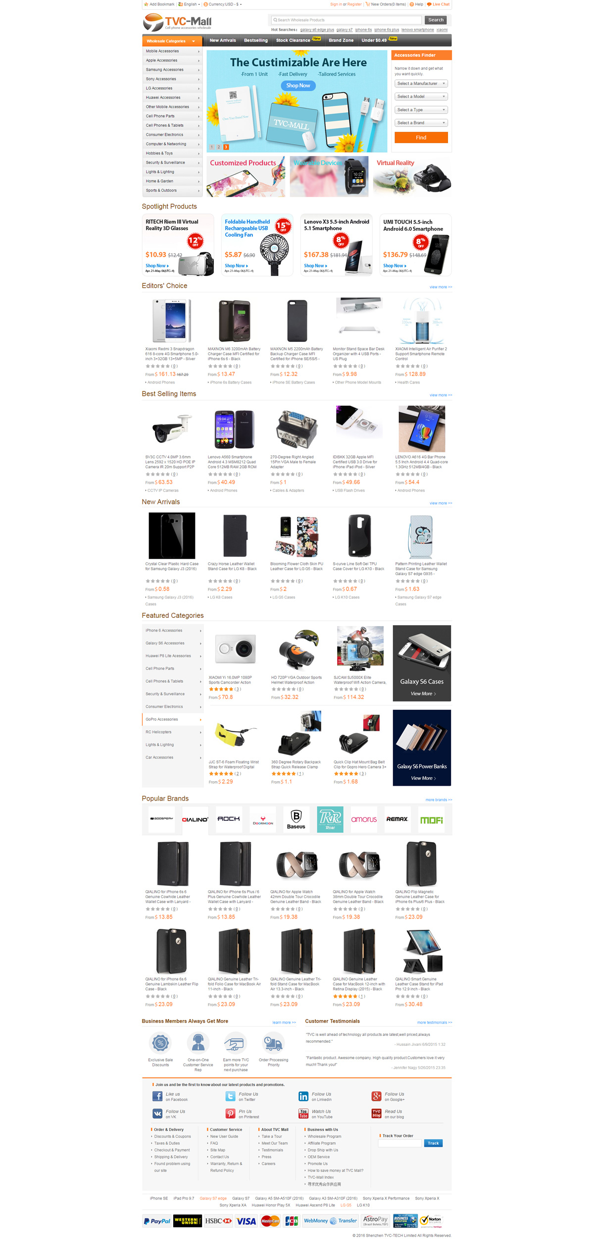 tvc-mall.com是深圳最大的3C數(shù)碼配件綜合外貿(mào)商城網(wǎng)站之一,公司也做亞馬遜平臺(tái),在B2C外貿(mào)出口方面非常知名,是一個(gè)年銷(xiāo)售額過(guò)億的外貿(mào)公司。Welcome to TVC-Mall, a fast-growing and leading supplier of replacement parts and accessories for cell phones, tablets and other devices.