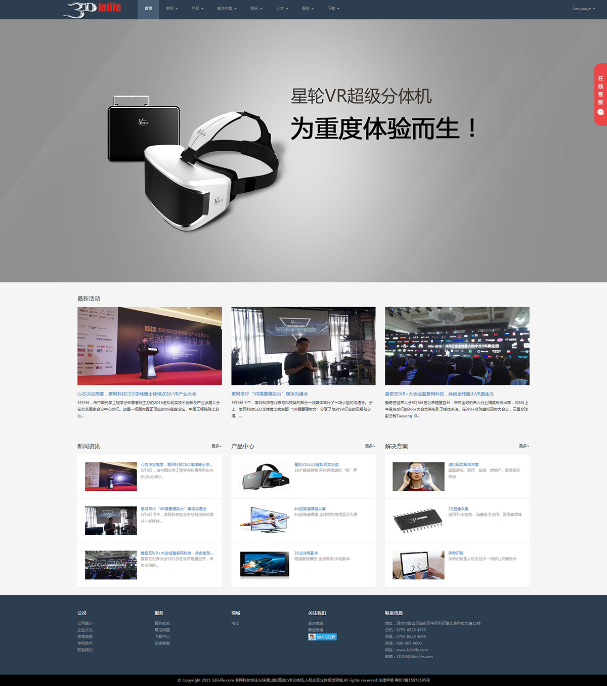 深圳VR公司VR設(shè)備企業(yè)網(wǎng)站建設(shè)立體視覺,3D采集,VR分體機(jī)領(lǐng)跑者