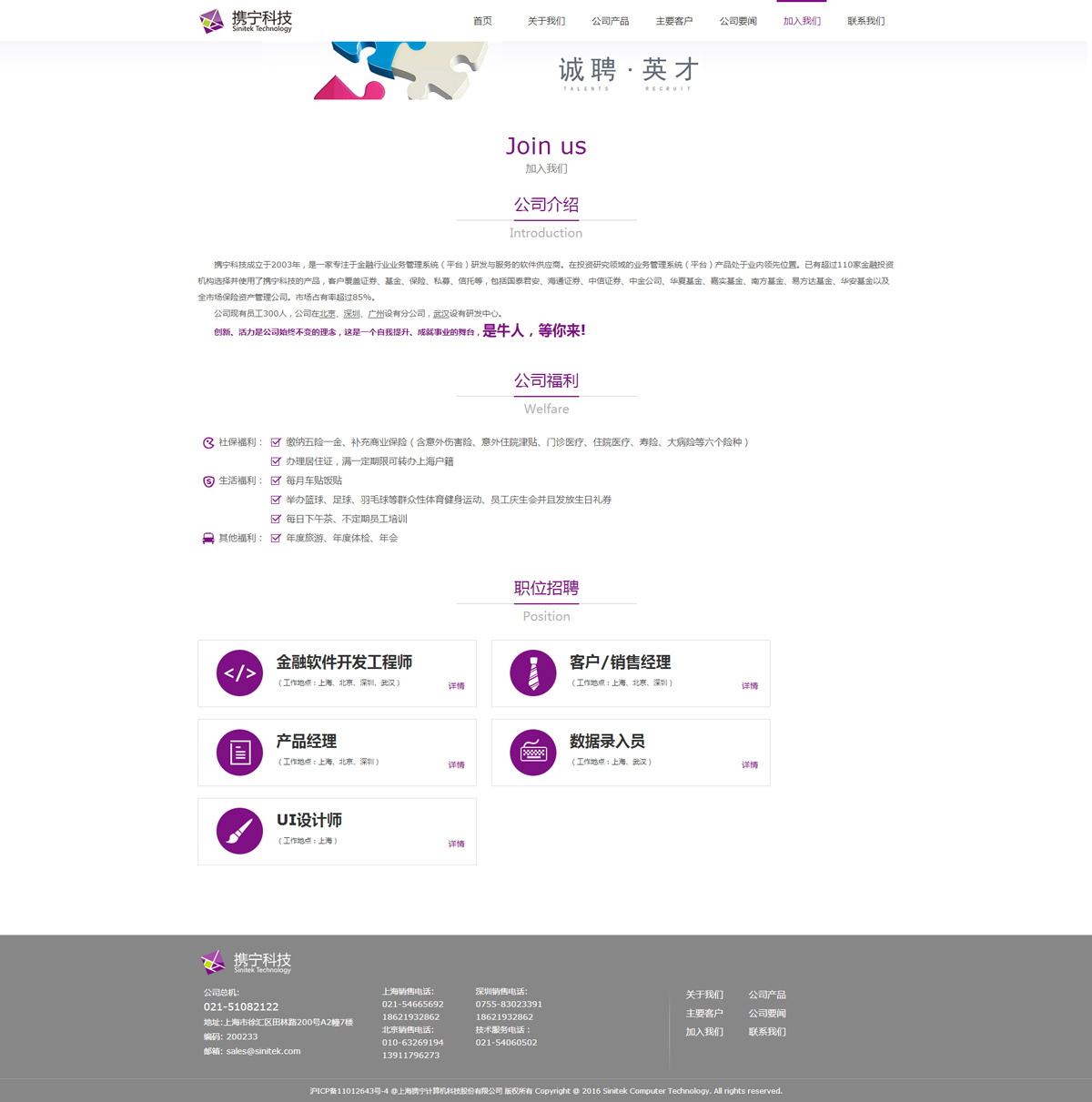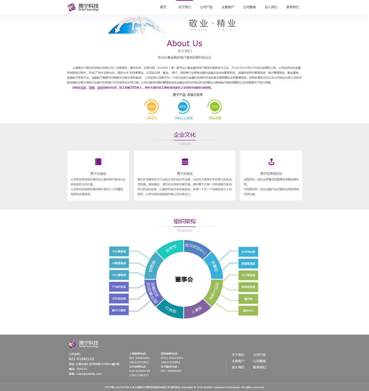 公司在多年的金融領(lǐng)域服務過程中,形成了“技術(shù)創(chuàng)新為先、服務為本”的經(jīng)營理念。公司在證券、基金、 銀行、保險等行業(yè)擁有完整的金融企業(yè)綜合管理系統(tǒng)、金融投資研究管理系統(tǒng)、客戶管理系統(tǒng)、基金直銷、金融電子商務平臺、金融電子客服平臺等解決方案與典型案例。 公司堅持以信息平臺+個性化定制為金融機構(gòu)提供符合自身發(fā)展需要的業(yè)務管理系統(tǒng),獨特的服務方式以及公司定位也使公司在快速發(fā)展的過程中得到行業(yè)客戶的高度認可及良好的市場口碑。公司豐富項目服務管理經(jīng)驗及金融業(yè)務知識的鉆研與積累也為提高客戶服務質(zhì)量和公司發(fā)展提供了有力保障