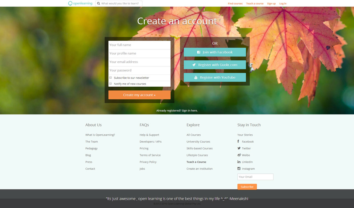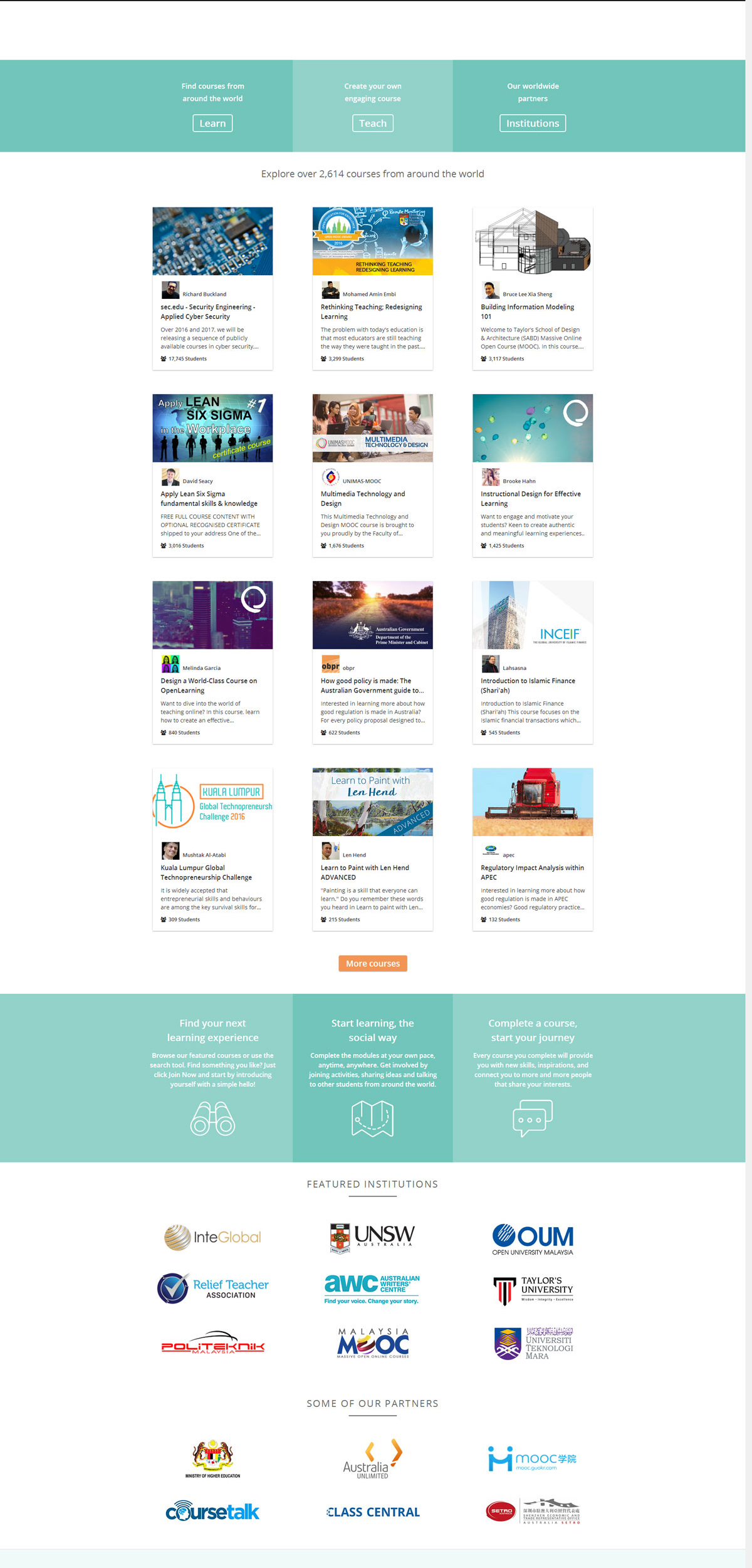 免費在線開放大學(xué)是一個教育平臺,允許任何人創(chuàng)建、發(fā)布、加入課程,該教學(xué)平臺由位于澳大利亞悉尼的新南威爾士大學(xué)的教授和工程師創(chuàng)辦,主要的課程有藝術(shù)和設(shè)計、商業(yè)和經(jīng)濟、電腦與技術(shù)