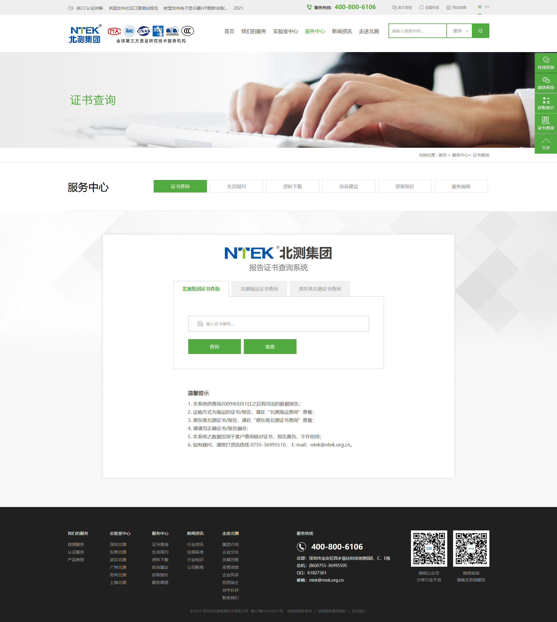 作為一家專業(yè)檢測(cè)機(jī)構(gòu),網(wǎng)站建設(shè)定制設(shè)計(jì)時(shí)需要從服務(wù)詳情,實(shí)驗(yàn)室設(shè)備等多維度展示公司環(huán)境以及技術(shù)優(yōu)勢(shì),提升客戶對(duì)企業(yè)的實(shí)力的認(rèn)可,增加證書查詢功能,增加網(wǎng)站實(shí)用性。