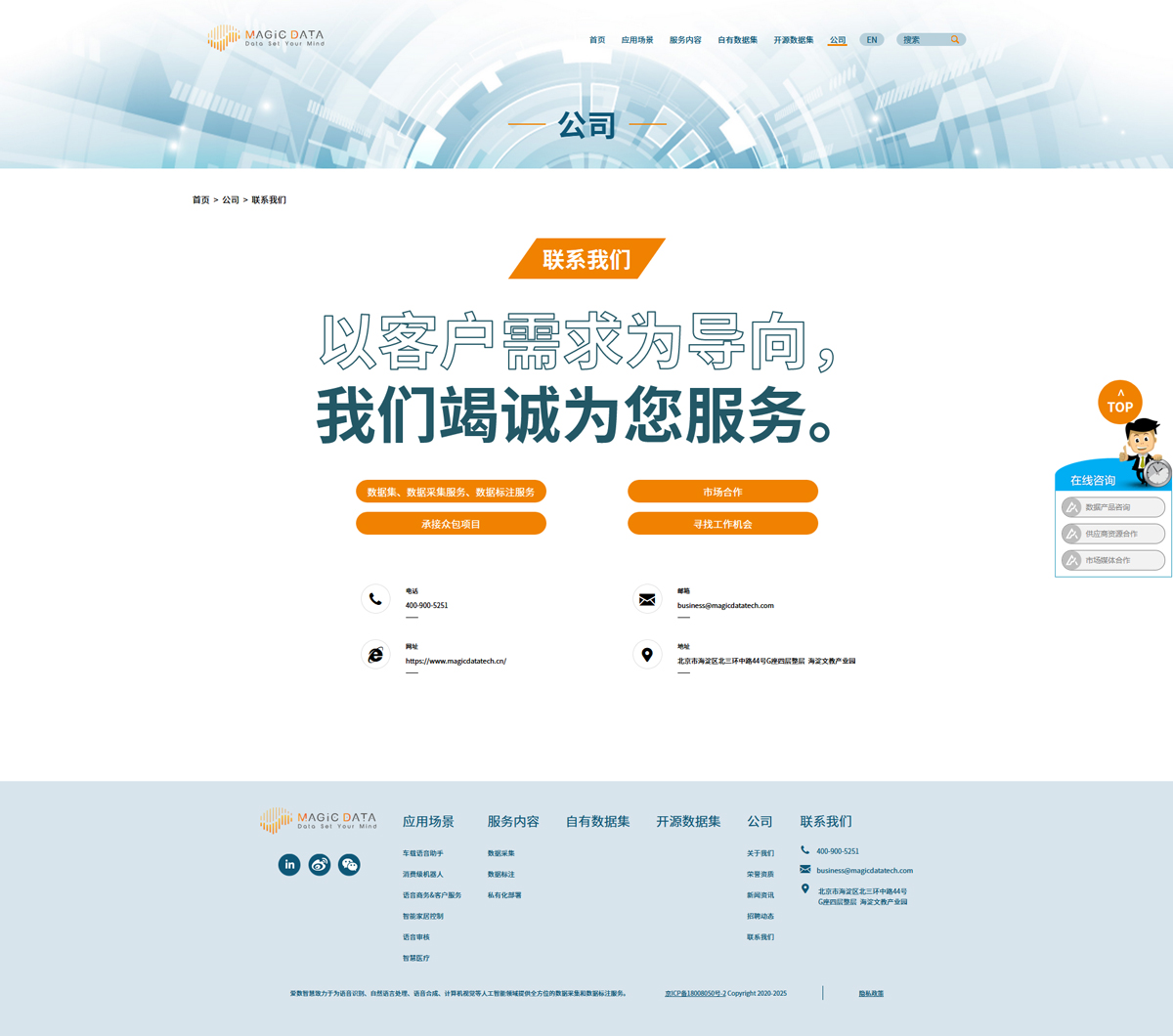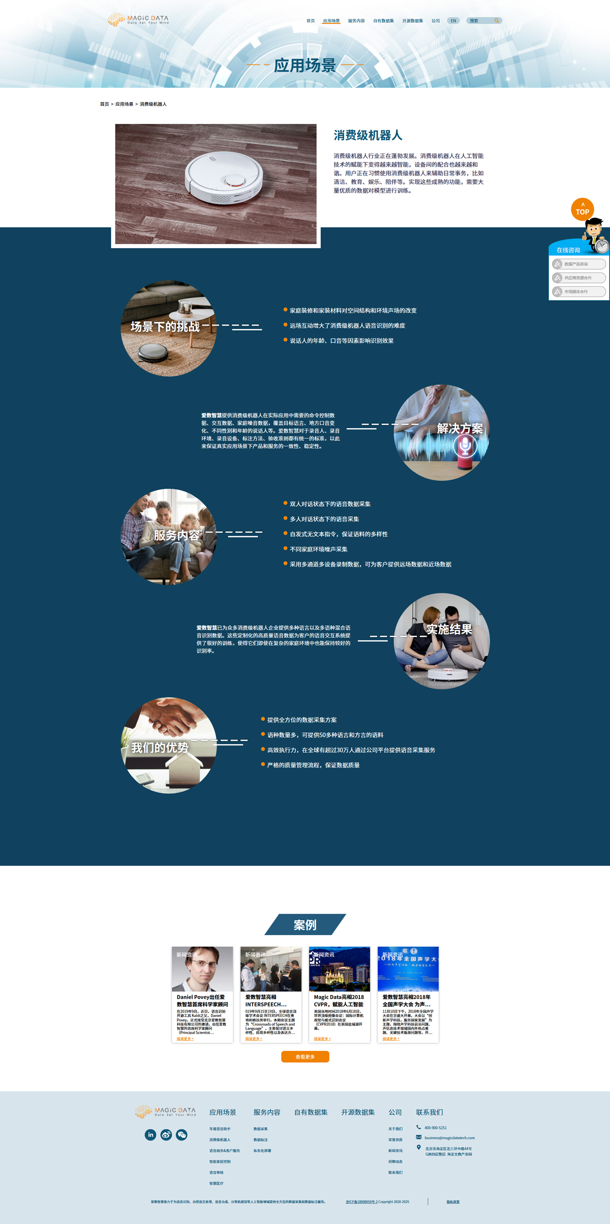 作為一家專提供數(shù)據(jù)服務(wù)的企業(yè),官網(wǎng)定制過程中要突出公司服務(wù)能力的專業(yè)性,網(wǎng)站設(shè)計使用科技元素,并充分展示應(yīng)用場景,是網(wǎng)站成為一個接地氣的營銷媒介。