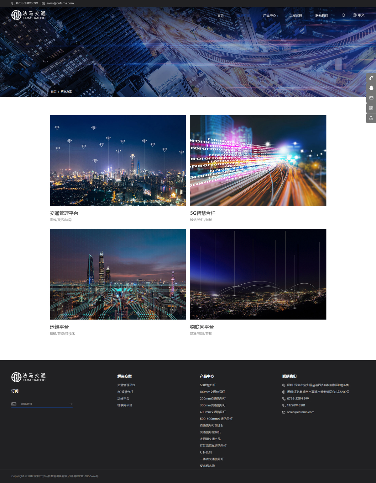 作為一家品牌智能交通設(shè)備生產(chǎn)企業(yè),網(wǎng)站建設(shè)時將產(chǎn)品與解決方案結(jié)合展示,讓客戶對公司技術(shù)優(yōu)勢有更深刻的認(rèn)知,網(wǎng)站設(shè)計充滿科技感,突出企業(yè)高新技術(shù)優(yōu)勢。
