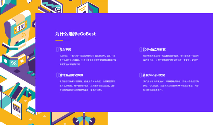 總而言之,我們eGoBest認(rèn)為,做一個(gè)好的品牌網(wǎng)站,企業(yè)必須要考慮多方面的因素,做得好可以幫助企業(yè)宣傳及營(yíng)造品牌氣場(chǎng),從而提高業(yè)務(wù)能力,贏得客戶,促進(jìn)企業(yè)發(fā)展;反之,如果做得不好,會(huì)影響企業(yè)形象,甚至人才招聘都會(huì)受到影響。因此,企業(yè)必須重視品牌網(wǎng)站建設(shè)公司的選擇,才能打造一個(gè)優(yōu)秀的品牌網(wǎng)站。